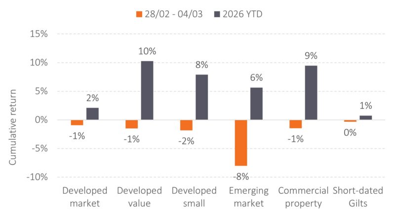 Returns over the past few days – since the latest escalation – are, as expected, noisier. A handful of trading days during a geopolitical shock rarely provide meaningful insight. Markets are simply repricing risk as new information becomes available, and they will continue to do so.